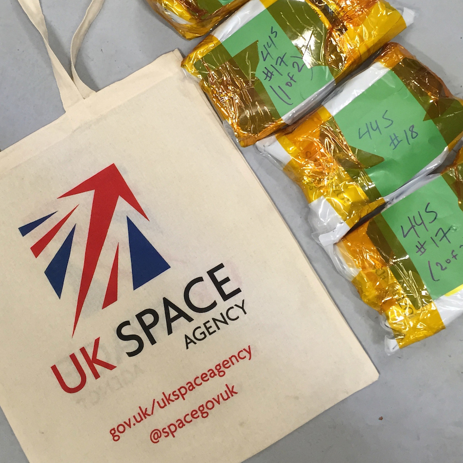 A bag of Rocket seed (Eruca sativa) was taken up into space by Tim Peake onto the European Space Station for six months. When it returned to Earth it was packed by us into sachets containing exactly 100 seeds. Another bag of exactly similar seed was also packed in the exact same way. Both batches were marked anonymously, then one sachet from each batch was sent to a school.